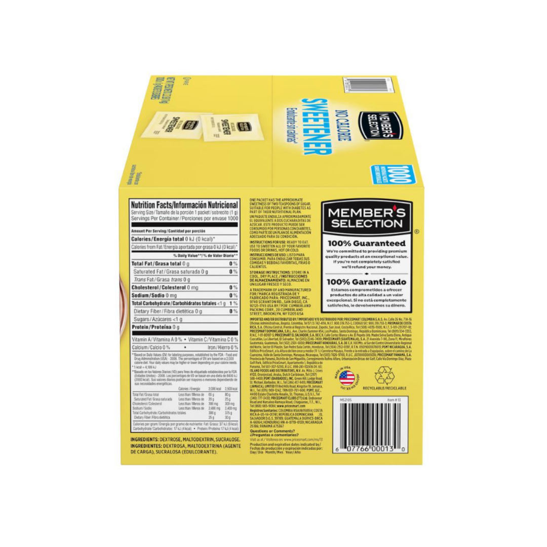 Disfruta del sabor dulce que te encanta sin preocuparte por las calorías con el Endulzante sin calorías Member's Selection. Ideal para quienes cuidan su dieta, este producto te permite endulzar tus bebidas y comidas favoritas sin añadir calorías extras. Perfecto para mantener un estilo de vida saludable sin renunciar al placer del dulce.